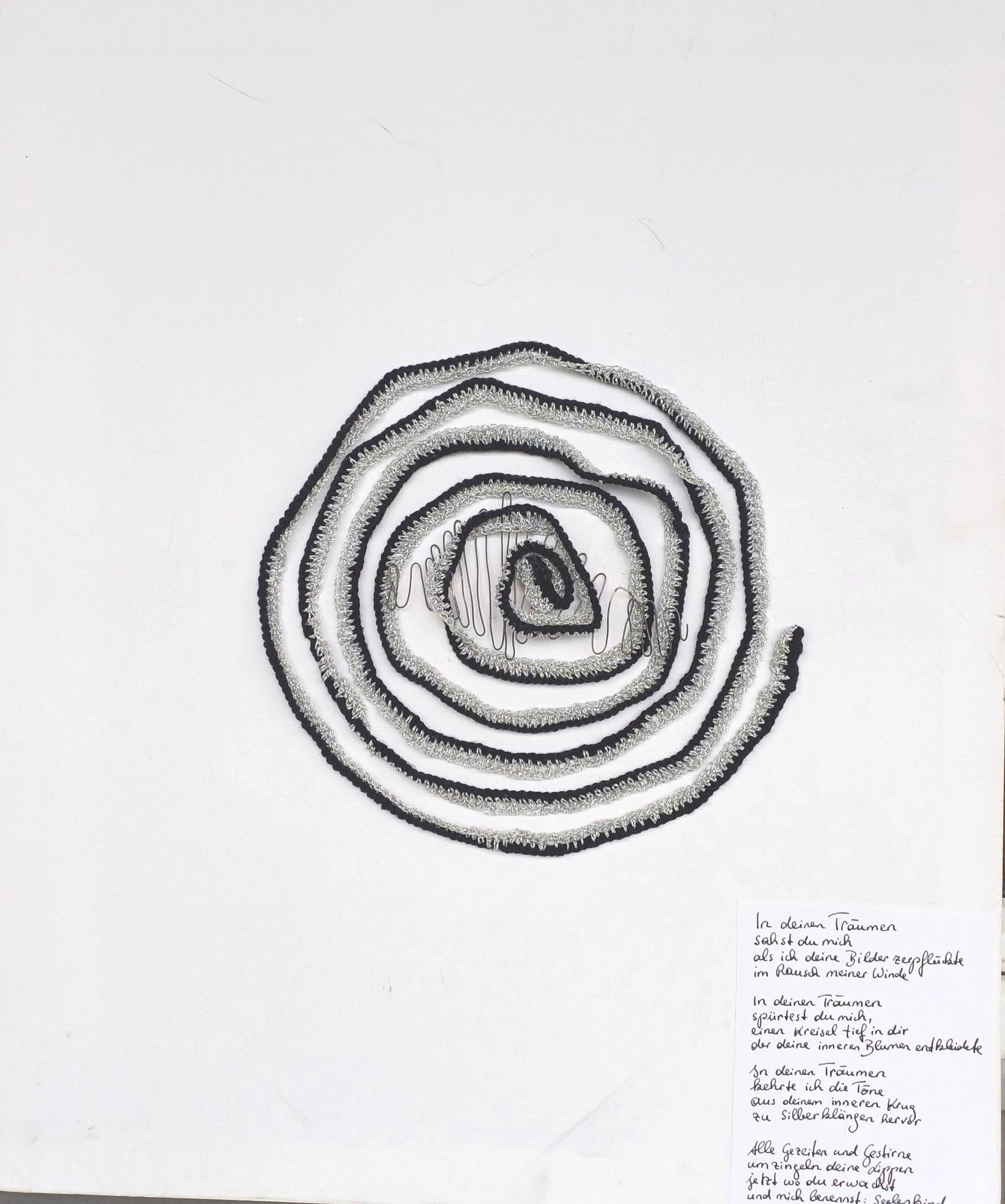 Strickerei und Silberdraht, Gedicht, auf Leinwand, 60 x 50 cm